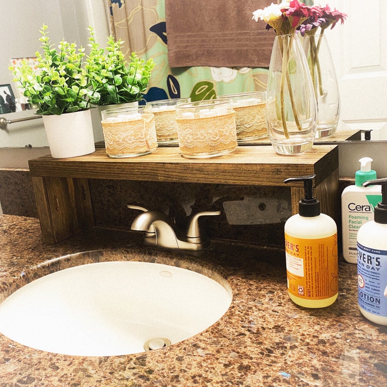 With the simple and modern looking design it will leave an otherwise messy and cluttered countertop looking clean and organized. Related:over sink wood shelf over sink plant shelf over the kitchen sink shelf over sink bathroom shelf over sink rack over the sink shelf over sink storage. This is what designers and ordinary people on the planet are creating. This shelf is very small the pictures of this was bigger to cover the kitchen sink. Brand new cash n carry price: